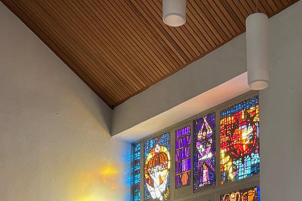 Eine Besonderheit des Gebäudes sind die vom Künstler und Hochschullehrer Prof. Bruno Müller-Linow gestalteten, farbenfrohen Kirchenfenster.